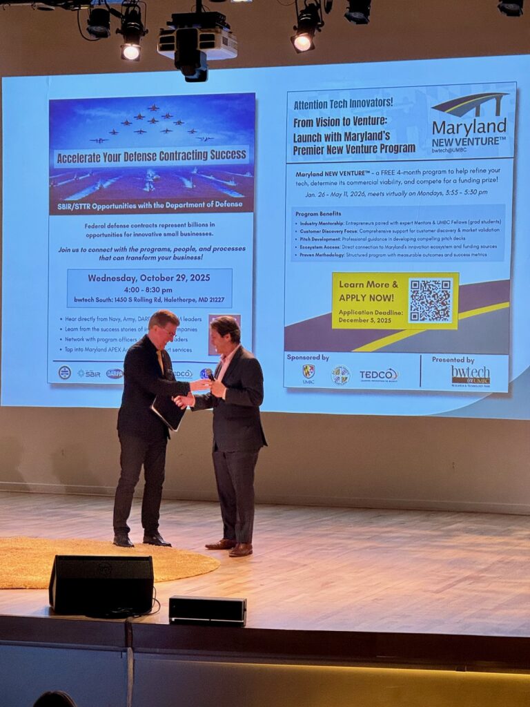 bwtech was thrilled to support this impressive celebration of innovation and excellence in research & creative achievement at UMBC. Executive Director Aaron Miscenich shared the breadth of opportunity available to UMBC innovators interested in commercialization. bwtech supports entrepreneurial innovation for UMBC research by providing a combination of resources, specialized programs, and a dedicated community at its research and technology park. This includes physical space, expert mentorship, educational programs, and crucial connections to the broader business and investment ecosystem, all designed to help translate UMBC’s research into successful, commercialized technology companies.
